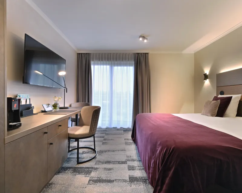 La chambre Superior à Charleroi vous offre un cadre spacieux et élégant, idéal pour un séjour d’affaires ou de loisirs. Cette chambre moderne et luxueuse dispose d’un grand lit confortable, d’une climatisation réglable, et d’une décoration contemporaine soignée pour un confort optimal.