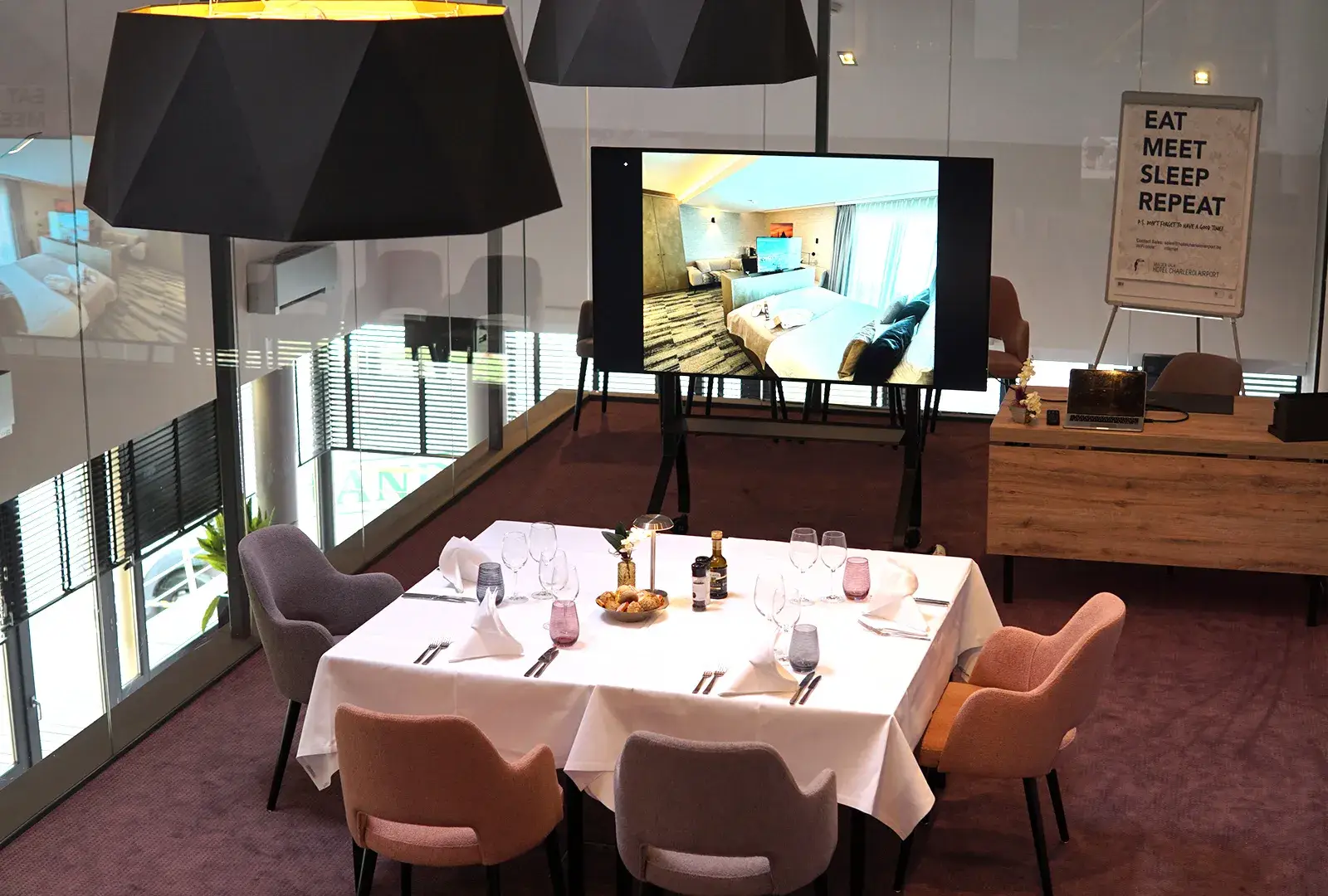 For your seminars, conferences, or team-building events in Charleroi, our professional rooms are equipped with the latest audiovisual technology.