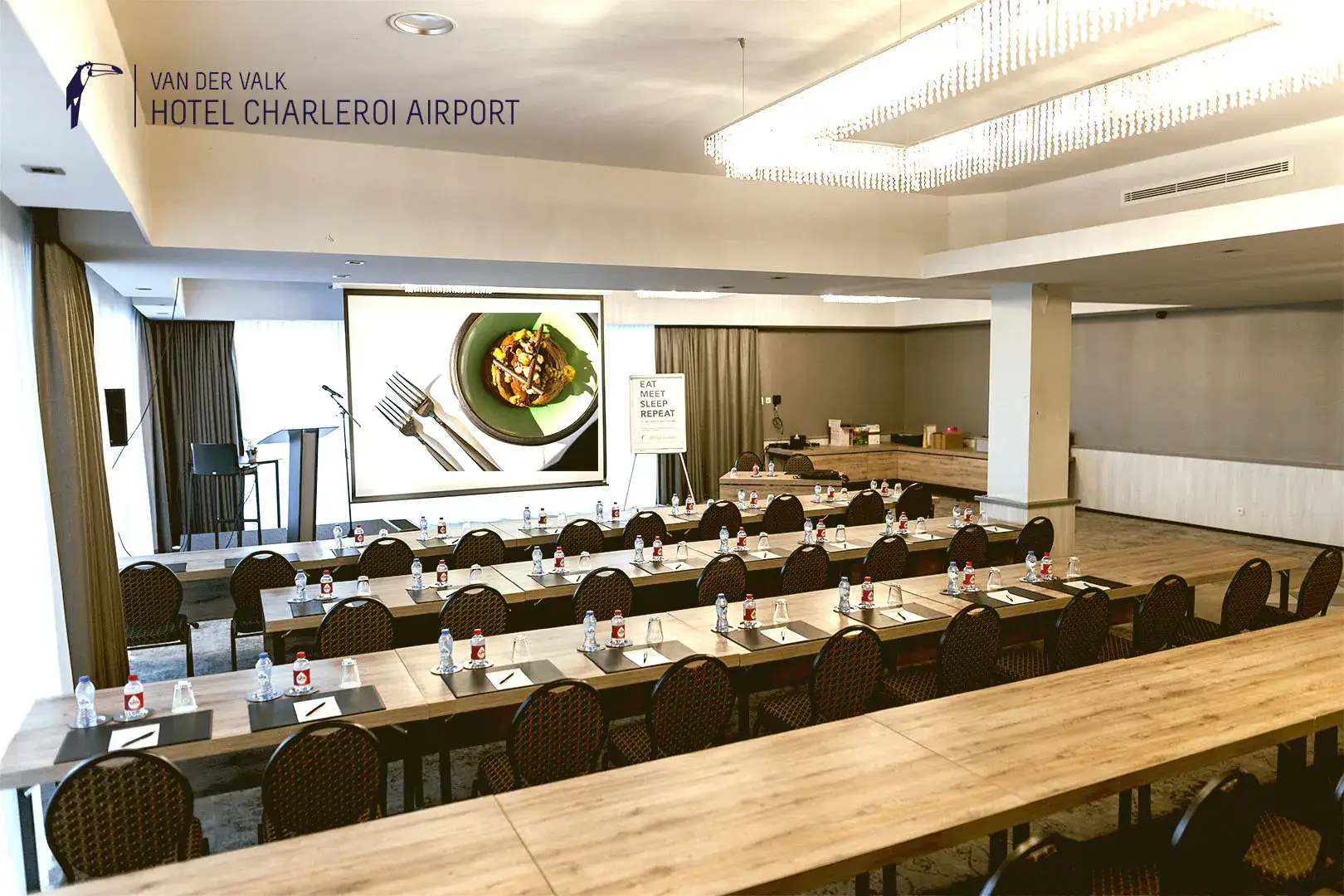 Host your private or professional event in an elegant and flexible setting at Van der Valk Hotel Charleroi Airport. Our party halls for rent in Charleroi are suitable for any occasion: weddings, birthdays, private parties, seminars, or team-building events. With our modern facilities, catering service, and personalized support, every event becomes a unique experience.
