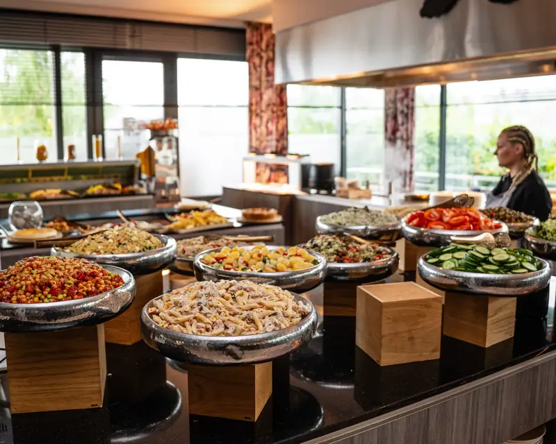 Geniet van ons onbeperkt lunchbuffet in Charleroi, van maandag tot vrijdag geserveerd van 12.00 tot 14.00 uur in een warme en gezellige sfeer. Of u nu hotelgast bent of gewoon in de buurt bent, profiteer van een gevarieerde en smakelijke lunch in het restaurant van het Van der Valk Hotel Charleroi Airport. Ons buffet is een niet te missen adres om onbeperkt van een volledige maaltijd te genieten — ideaal voor een ontspannend moment met collega’s, vrienden of familie.