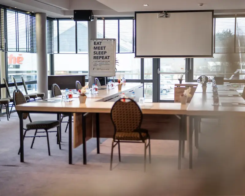 Pour vos réunions, séminaires ou conférences, profitez de nos espaces modernes, modulables et baignés de lumière naturelle. Conçues pour favoriser la productivité, nos salles s'adaptent à toutes les configurations — des petits comités aux grands événements — et disposent d'un équipement audiovisuel de pointe.